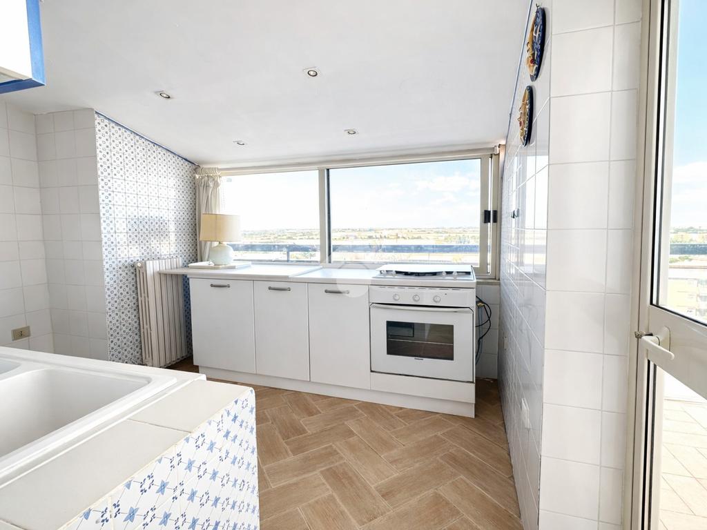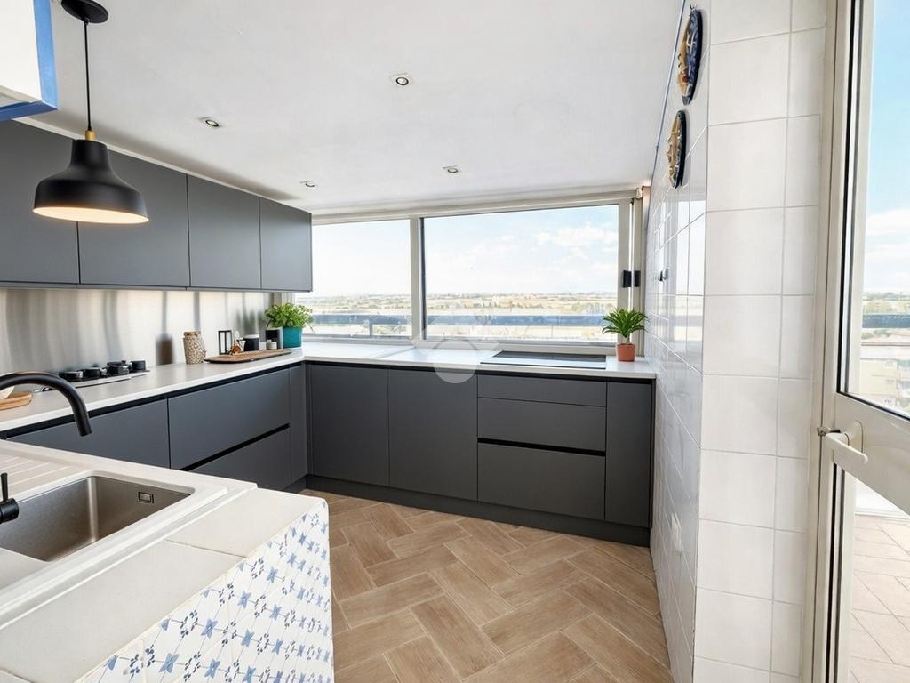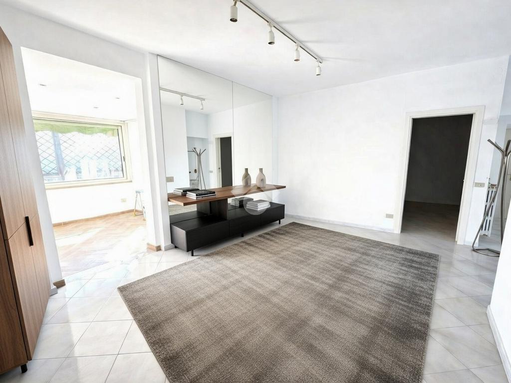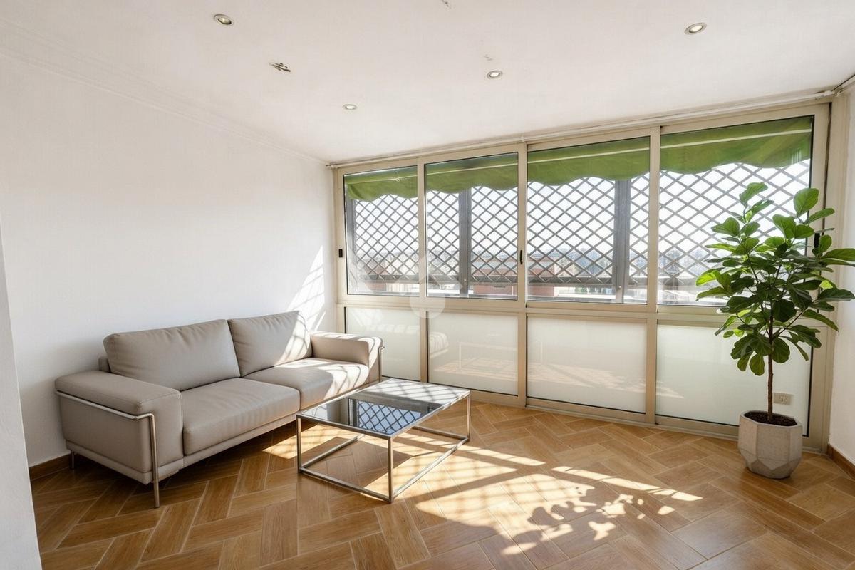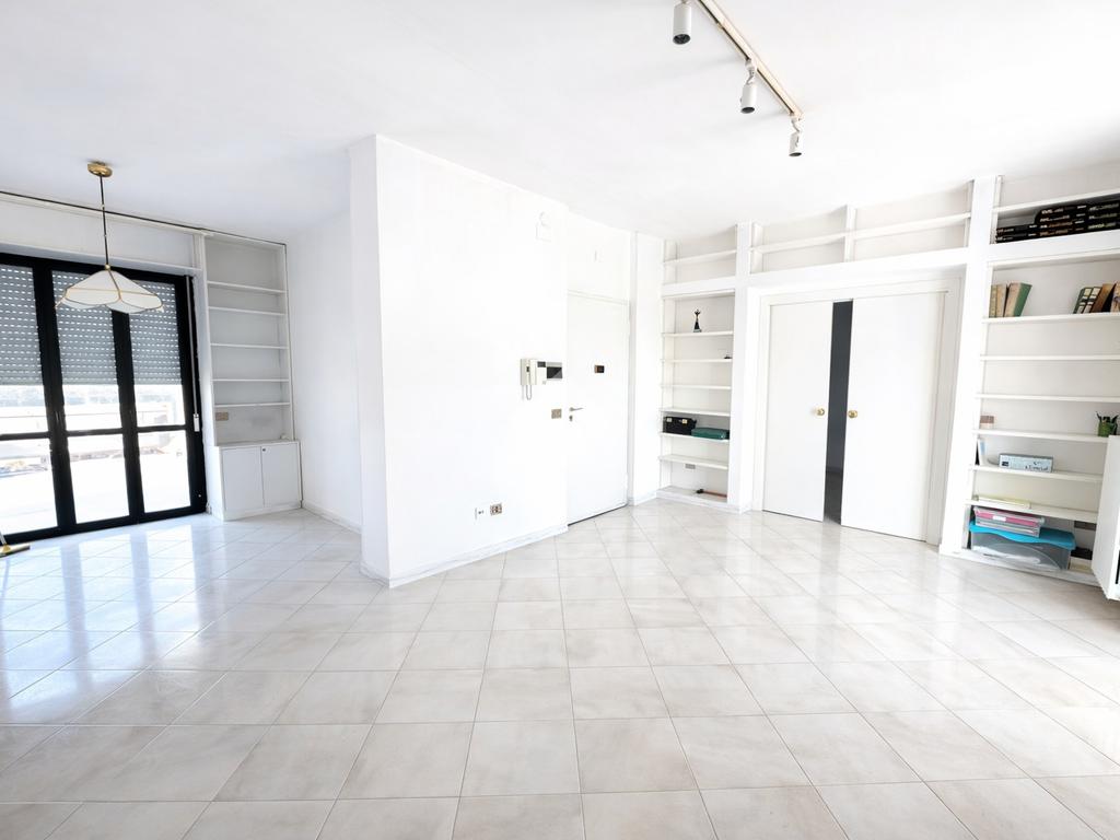 Entrando, ti accoglieranno gli spazi generosi di un ampio salone, arricchito dall'affaccio sul terrazzo che inondano l'ambiente di luce naturale e regalano una vista spettacolare.